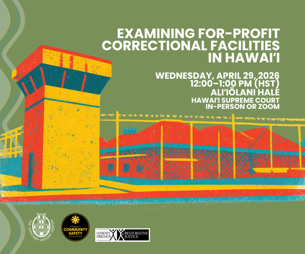 Disclaimer: While the Judiciary History Center provides a venue for diverse discussion, speakers’ remarks do not represent opinions of the Hawaiʻi State Judiciary.